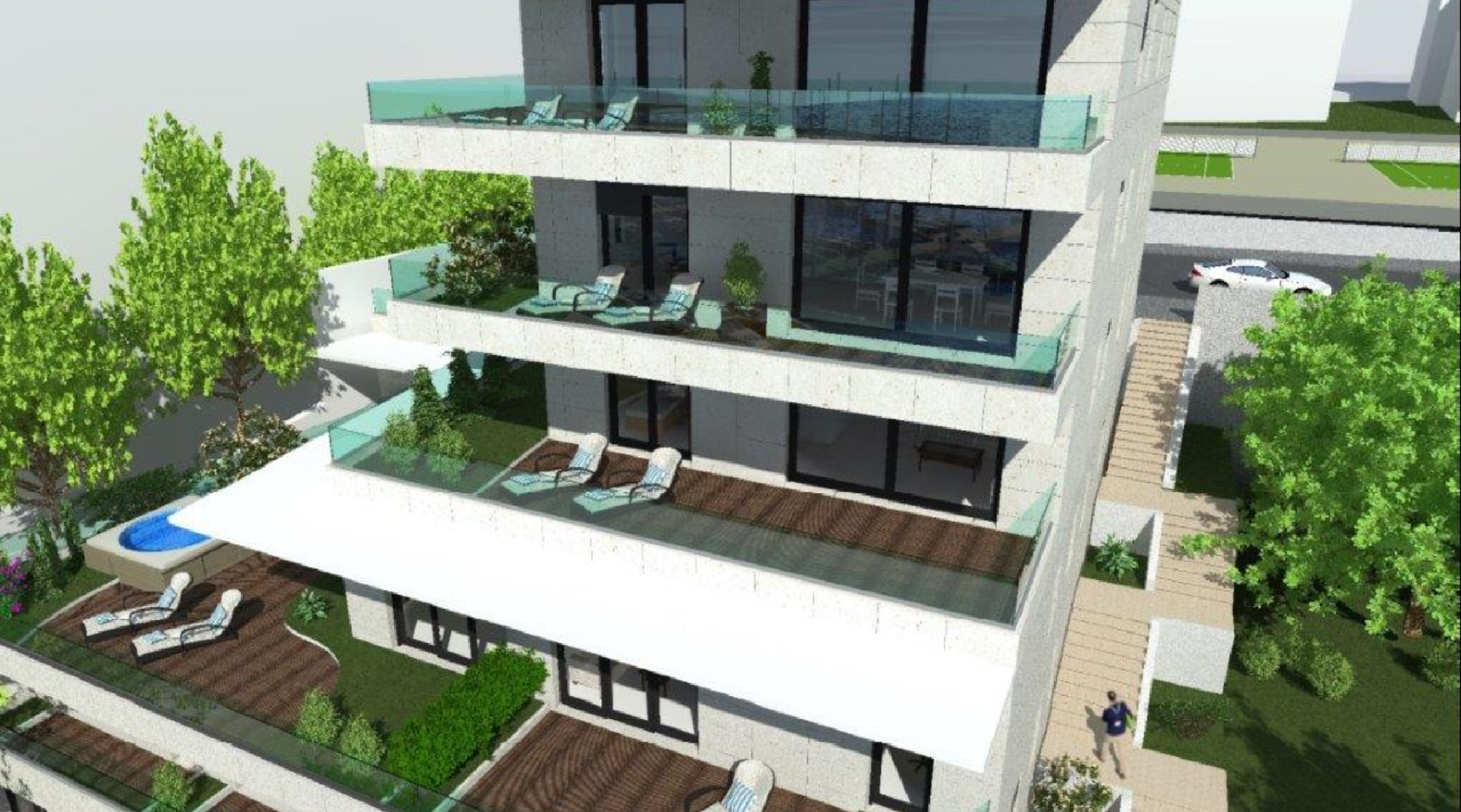 • 6 moderne Wohnungen (105–200 m²), alle mit direktem Meerblick und großen Terrassen/Balkonen